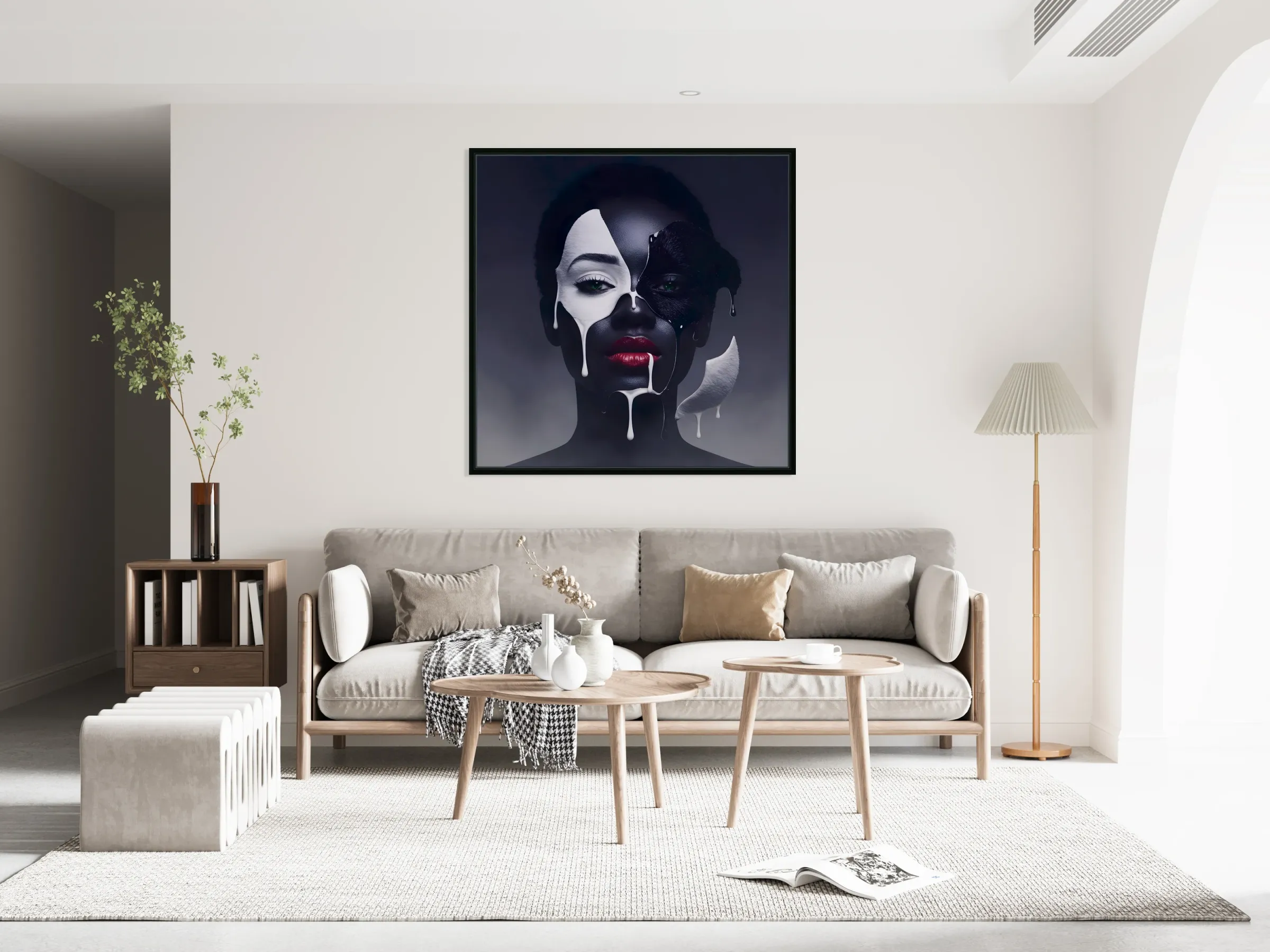Dramatic visual study of contrast and identity, merging modern surrealism with refined feminine power.